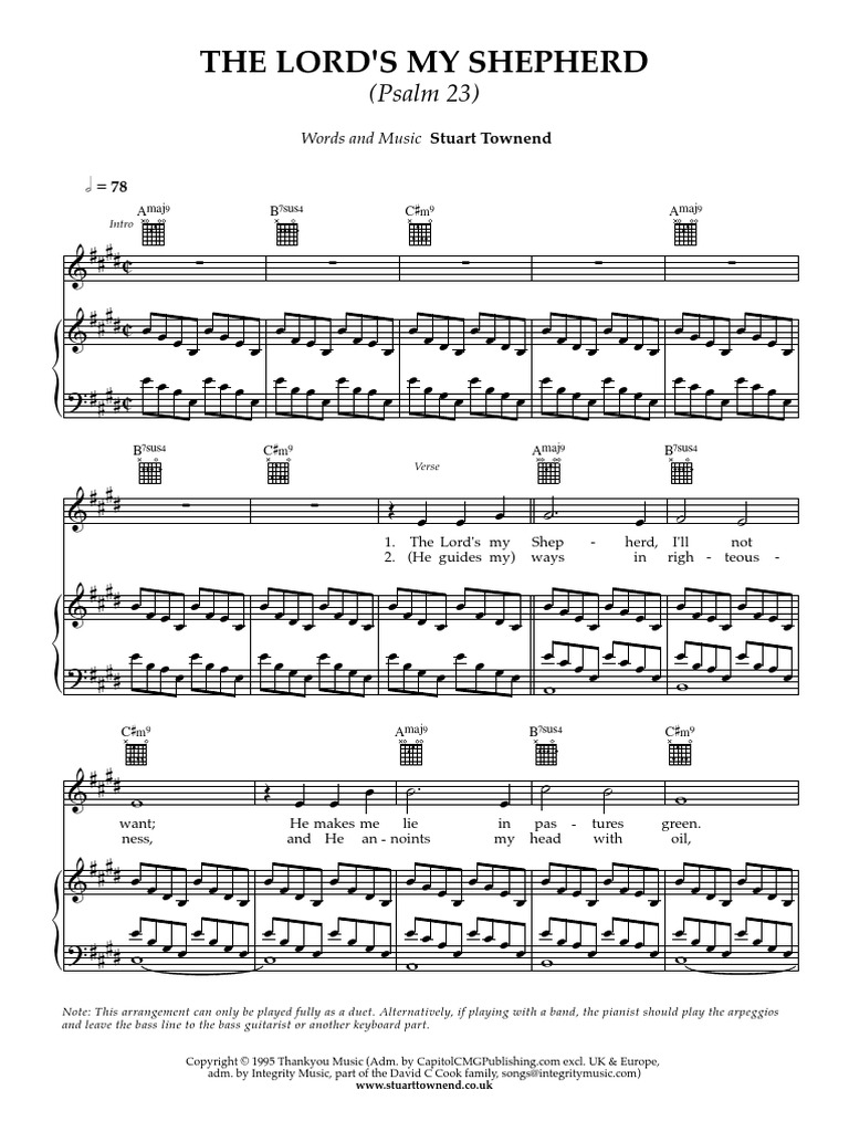 The Lord Is My Shepherd Psalm 23 Sheet Music Pdf Stuart Townend Praisecharts